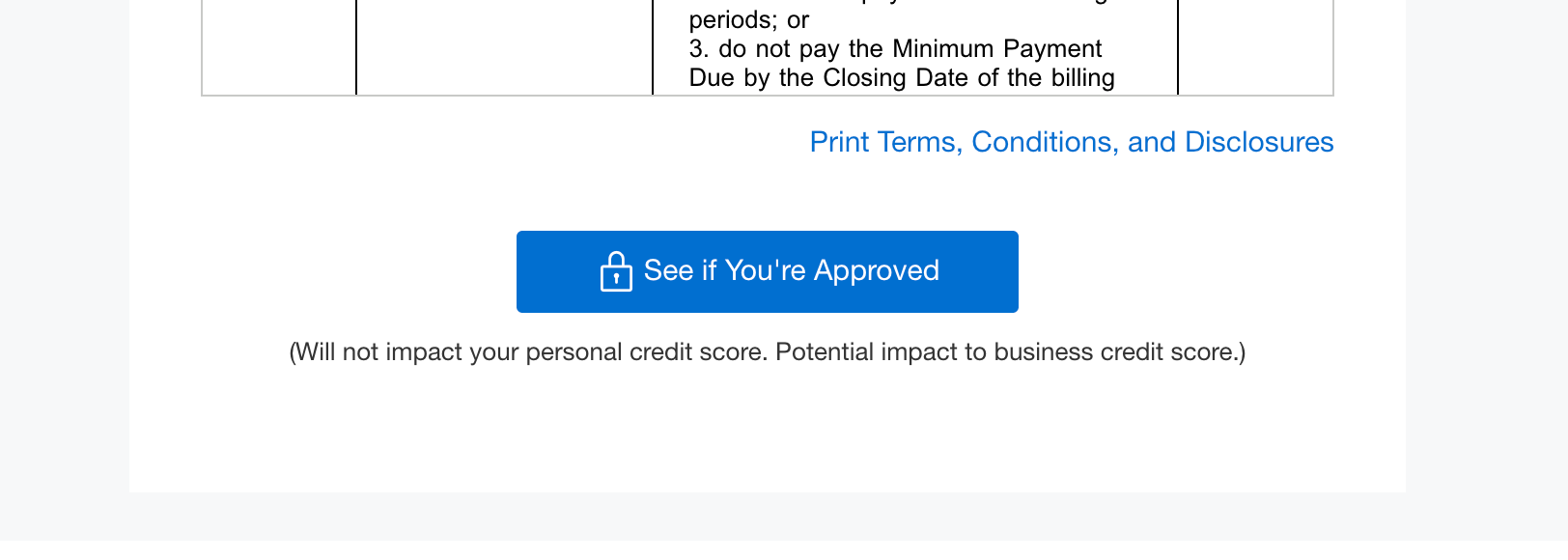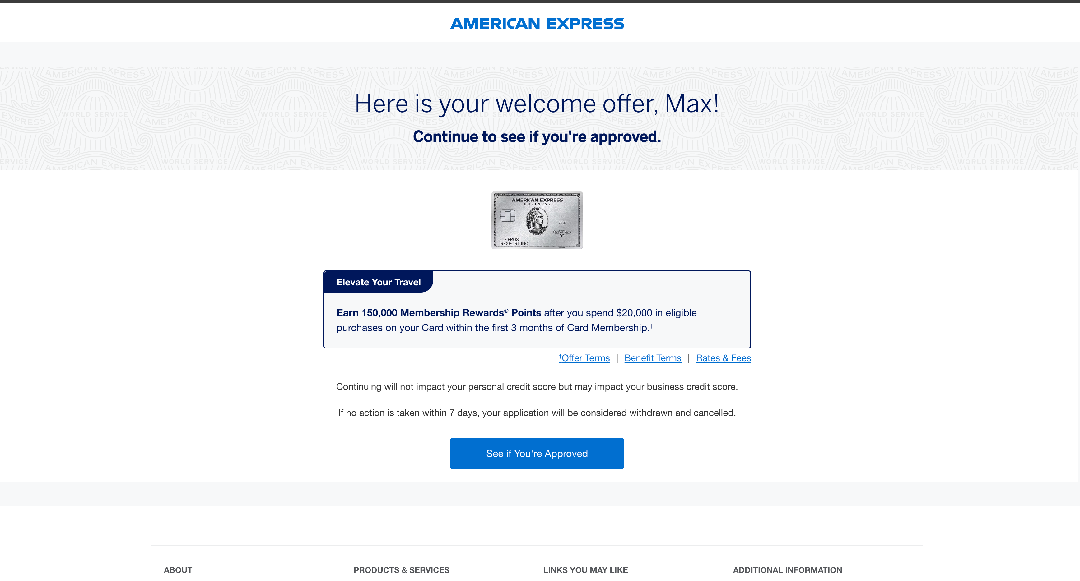 Here's the important part. When you click submit, Amex does a soft credit pull to determine your eligibility. Right below the submit button, you'll see a note that says something like "welcome offers vary, and you may not be eligible for an offer. This will not impact your personal credit score or business credit score."