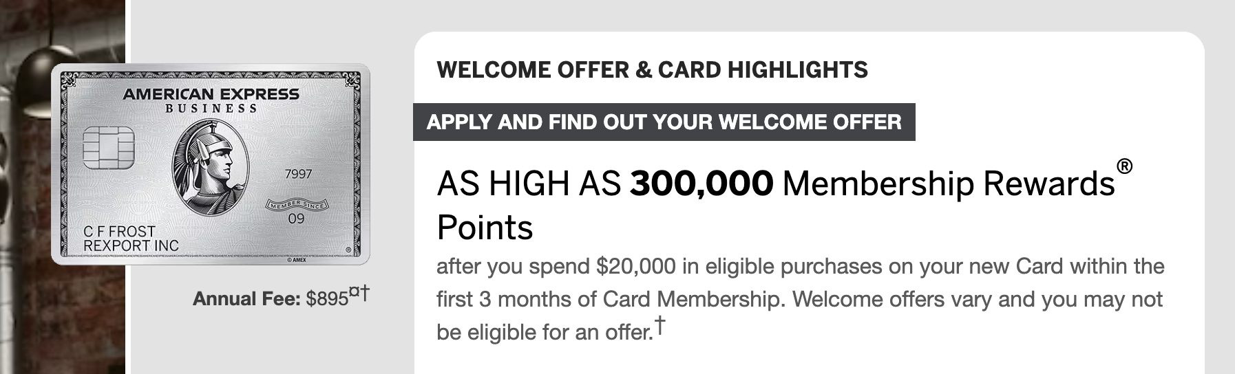 You'll find these offers through various links online. When you click "Apply Now," you'll land on a page that shows the top range, something like "as high as 300,000 Membership Rewards points."